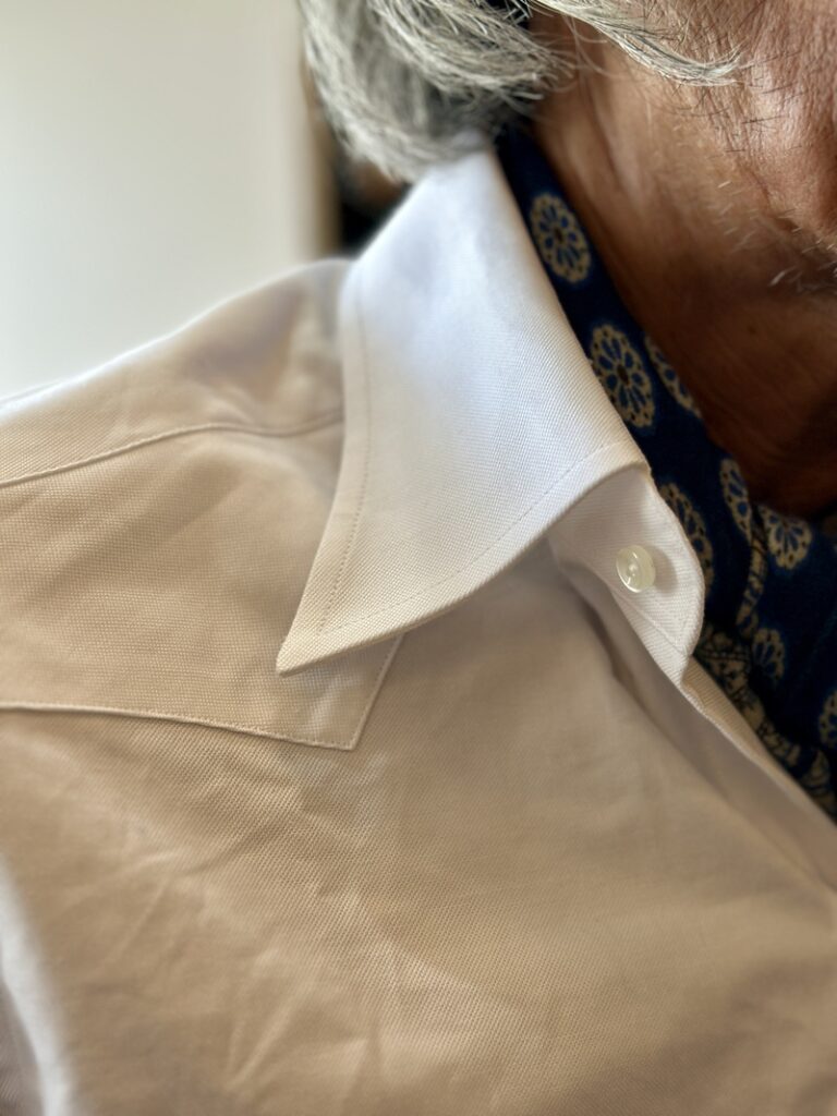 And since this is a made-to-order shirt factory, the collar has a beautiful texture.