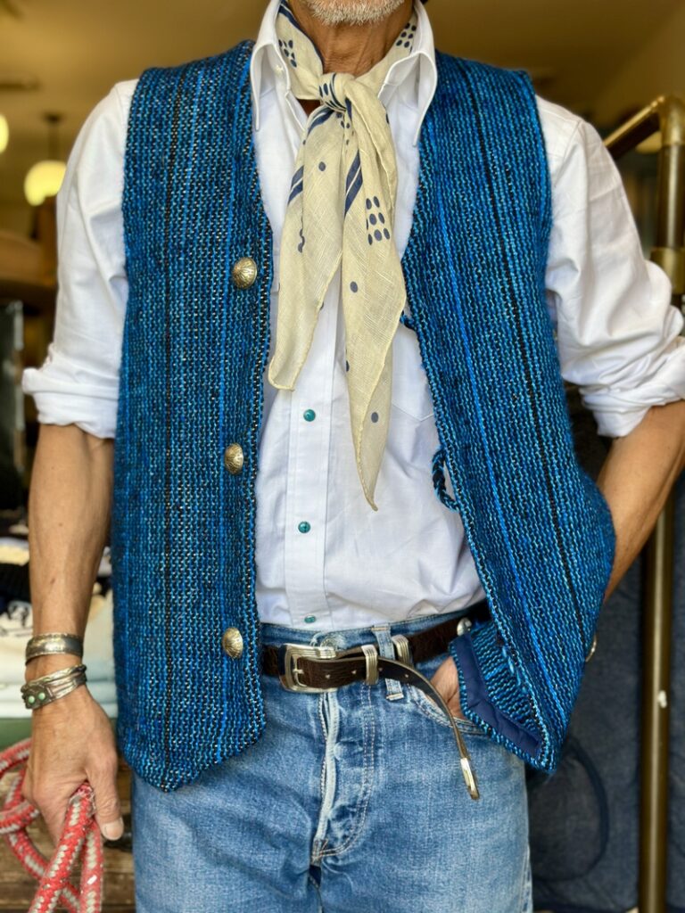 Since it’s a western shirt, it goes well with a vest made to order from Trujillos using indigo thread!