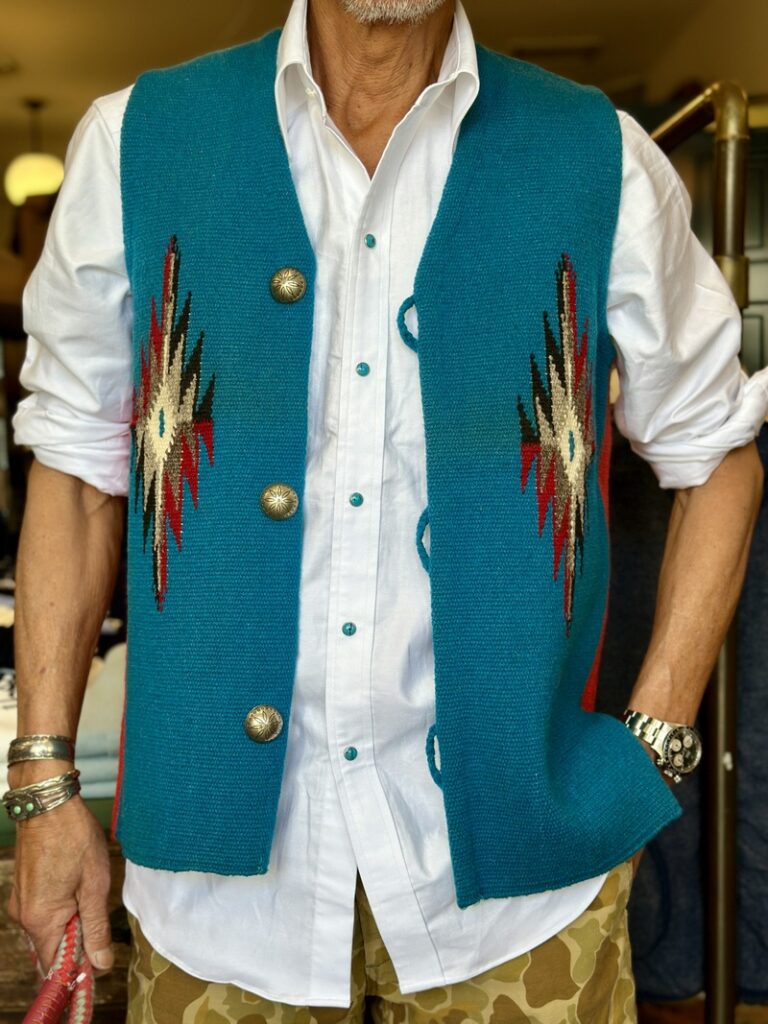 ウェスタンシャツなのでインディゴ糸でTrujillosに別注しましたベストなどには良くお似合いになりますね!